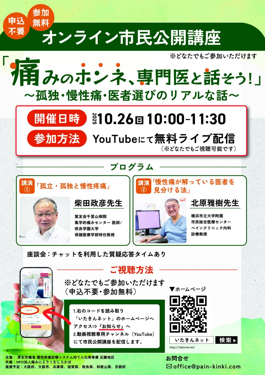 主催:厚生労働省慢性疼痛診療システム均てん化等事業 近畿地区